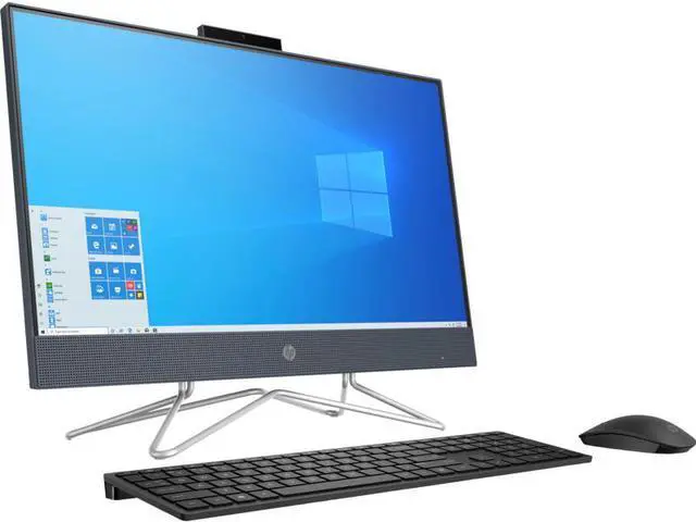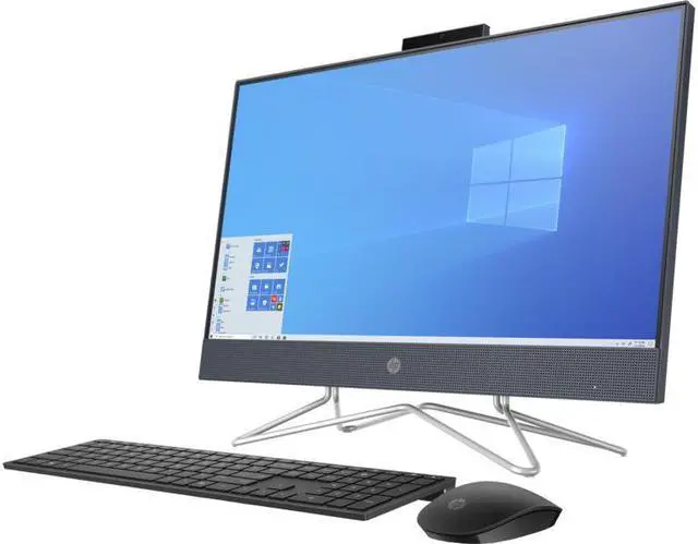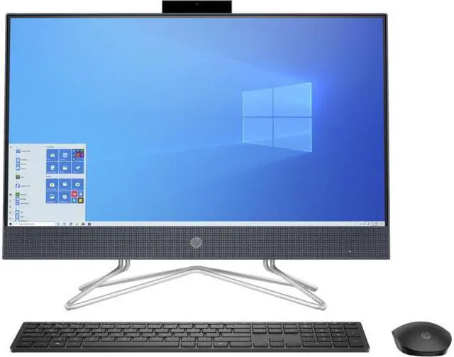 HP All-in-One 24-df0xxx" operates on Windows 11 and features an Intel Pentium Silver J5040 processor, 256GB storage, 8GB RAM, and Intel UHD Graphics 605. It offers a compact and basic computing solution for everyday tasks.