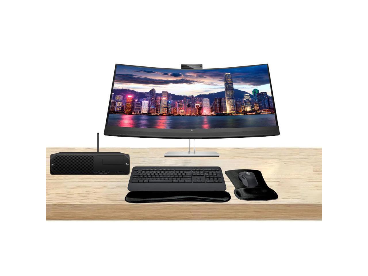 HP Workstation Bundle Z2 SFF G9 i7, 16GB RAM, 512GB SSD, Windows 11 Pro, EliteDisplay E34m 34 Curved 2K WQHD Monitor and MK650 Wireless Keyboard & Mouse with Gel Pad