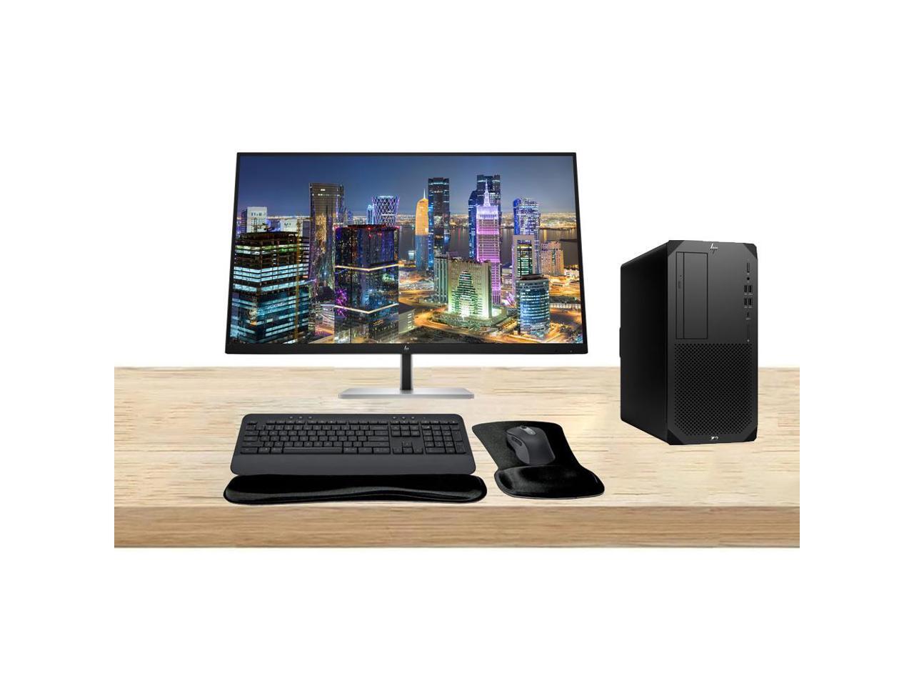 HP Workstation Bundle Z2 G9 Tower i7, 16GB RAM, 512GB SSD, Windows 11 Pro, T1000 8GB GDDR6, Dual EliteDisplay E32k G5 32-inch 4K Monitor, T2U Plus WiFi, MK650 Wireless Keyboard & Mouse with Gel Pad