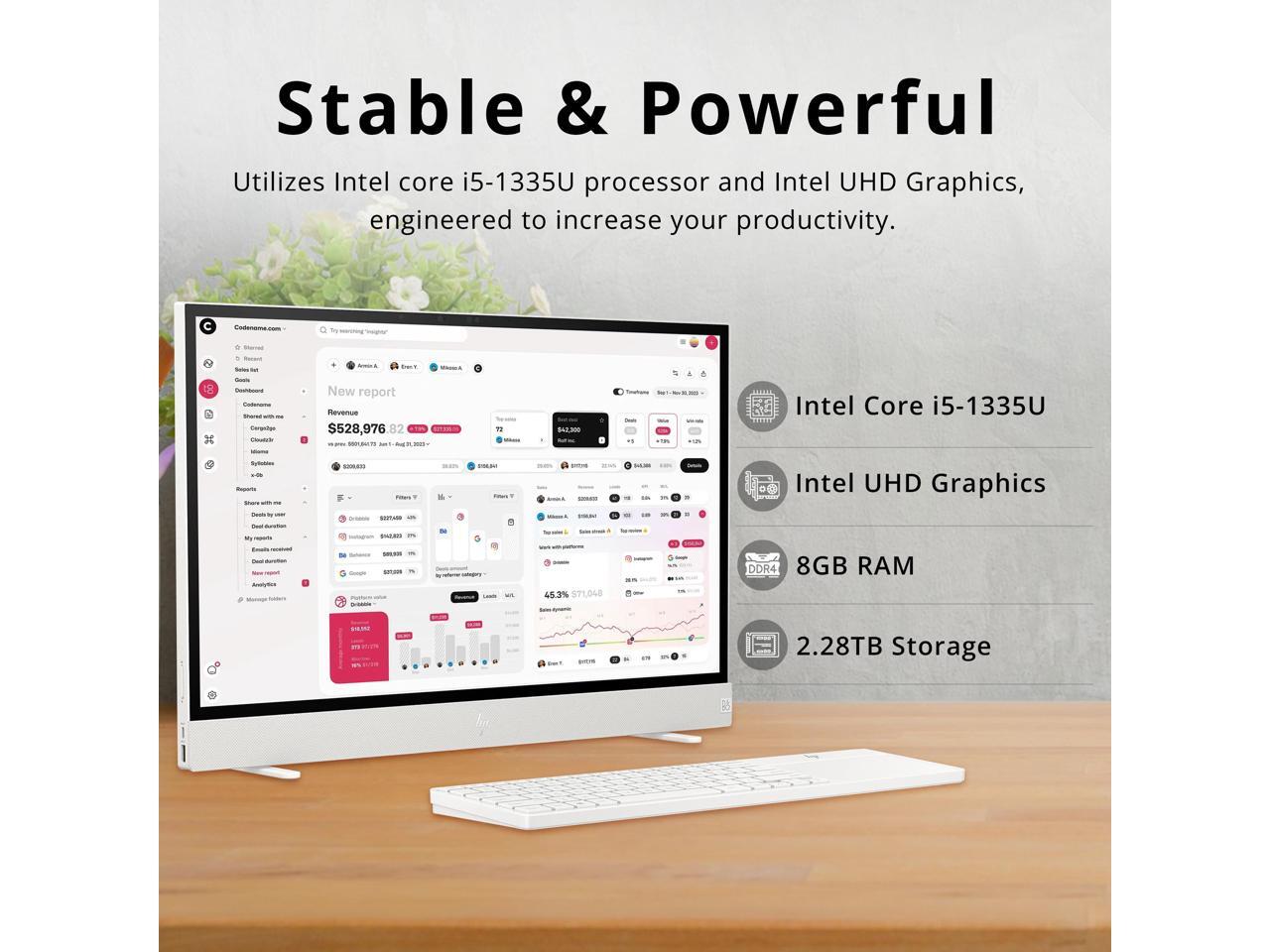 HP Envy Move All-in-One Desktop, 23.8" QHD Touchscreen Display, Intel i5-1335U, 8GB LPDDR5, 2.28TB Storage(2TB SSD + 288GB Docking Station Set), Intel UHD Graphics, Webcam, Wi-Fi 6, Win 11 Pro, White