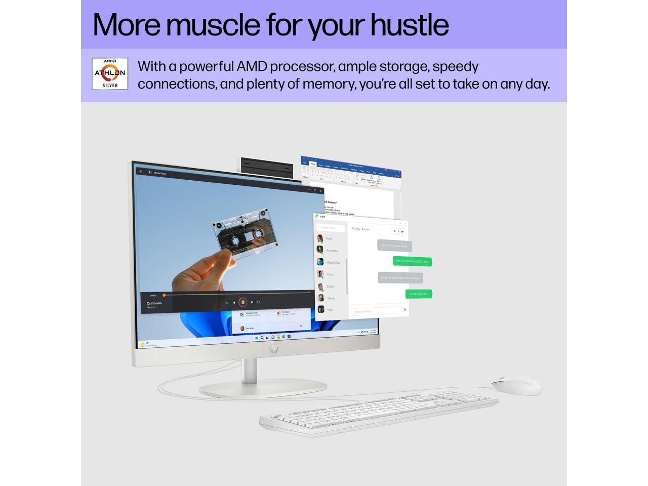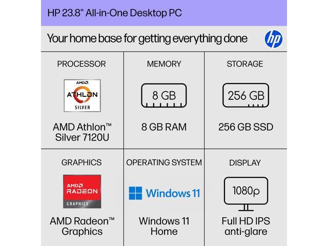 HP 24CR0410 23.8 inch All-in-One Desktop - AMD Athlon Silver 7120U - AMD Radeon Graphics - 8GB/256GB - Windows 11 Home