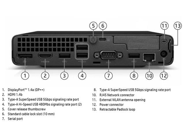 BACK: HDMI 4K, Display Port 1.4a , 2x USB 2.0 Type-A, 2x USB 3.2 Type-A Gen 1,RJ-45,Serial