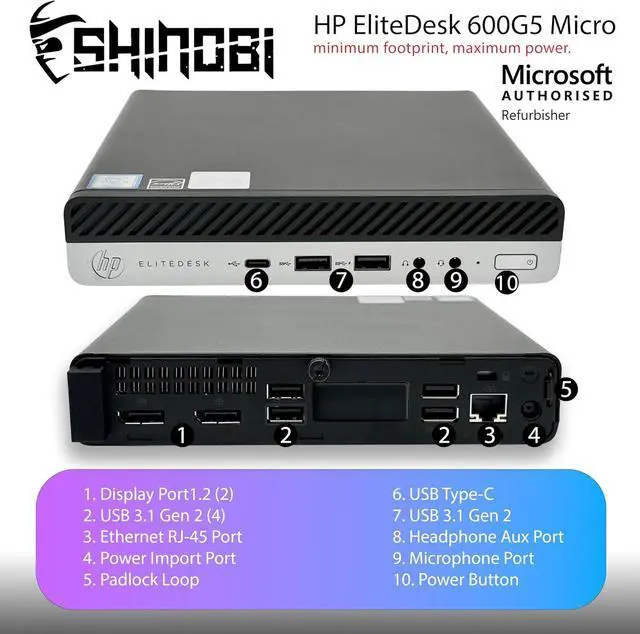 As a Microsoft Authorized Refurbisher, Refurb Ninja professionally renews each system through rigorous testing and certification. The EliteDesk 600 G5 Micro is a smart, sustainable solution for users seeking reliable performance in a compact package.