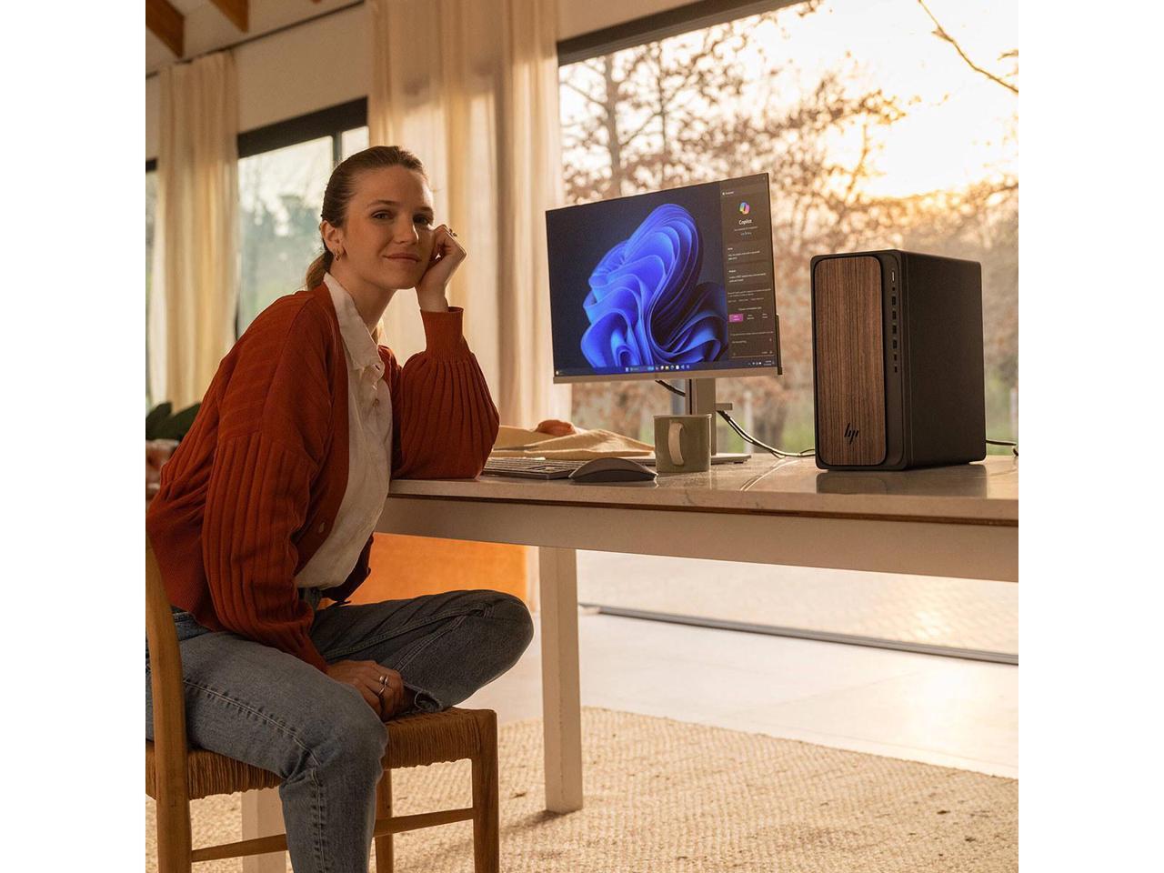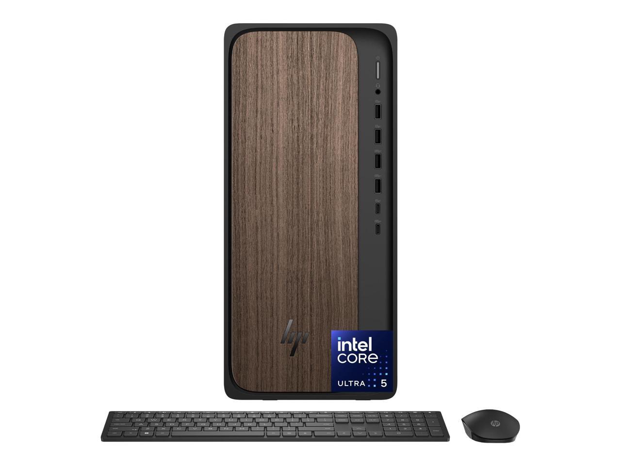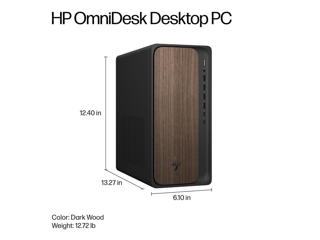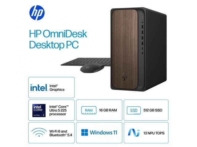 HP OmniDesk M03-0010 AI Desktop Computer, Intel Core Ultra 5 225 3.3GHz, 16GB RAM, 512GB SSD, Windows 11 Home, Jack Black/Dark Wood