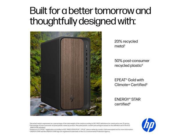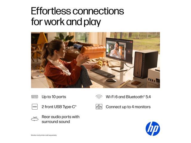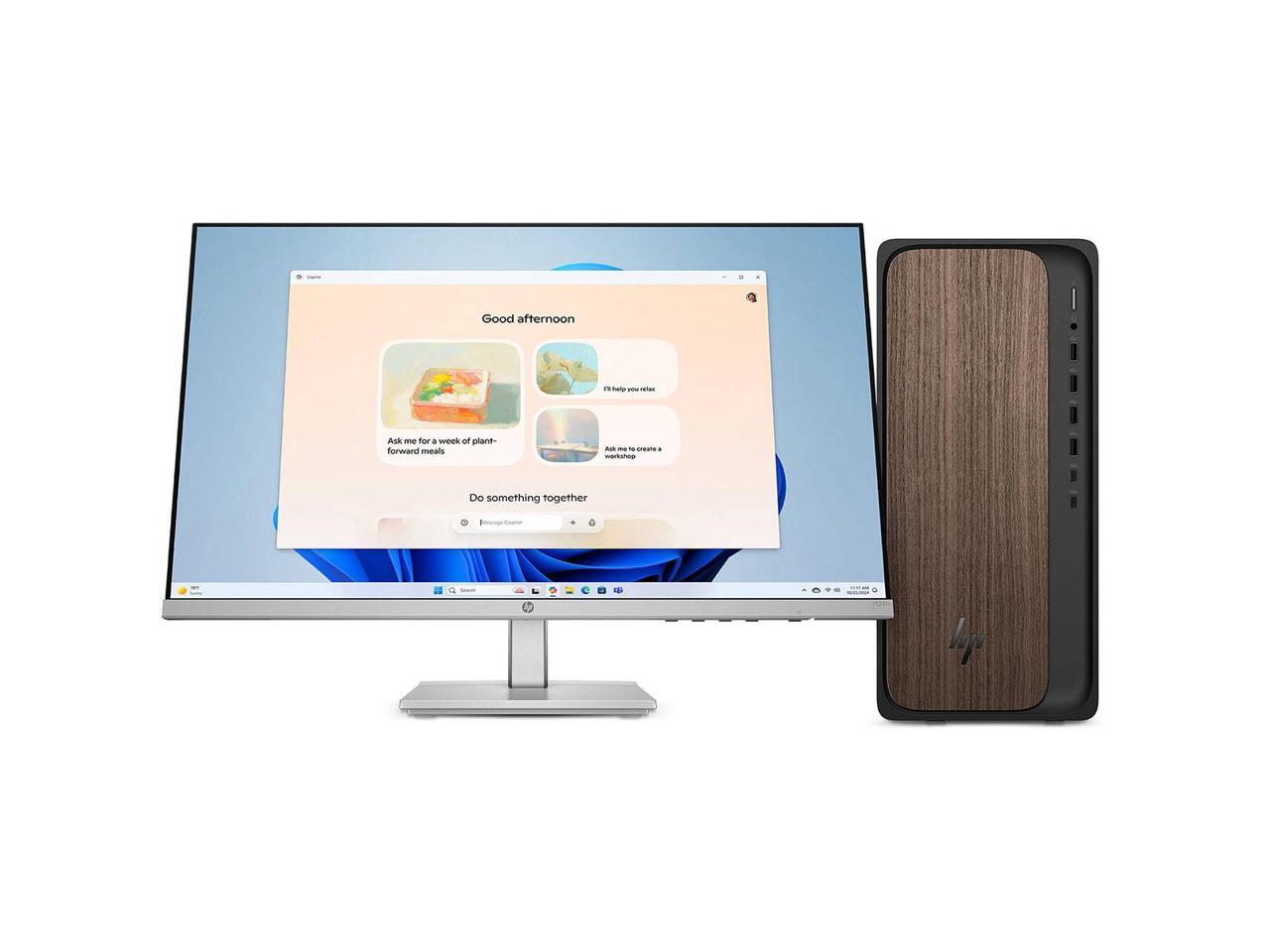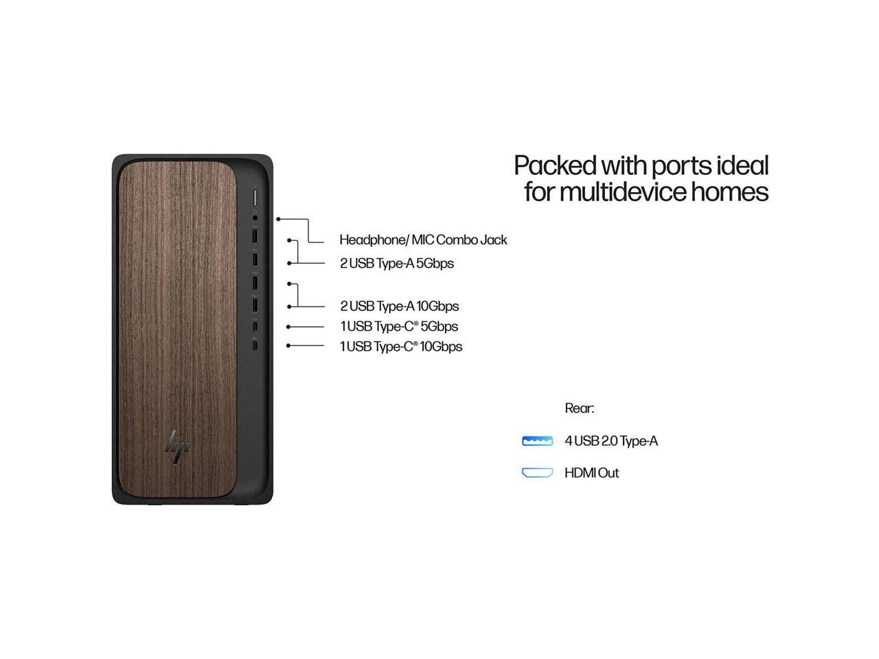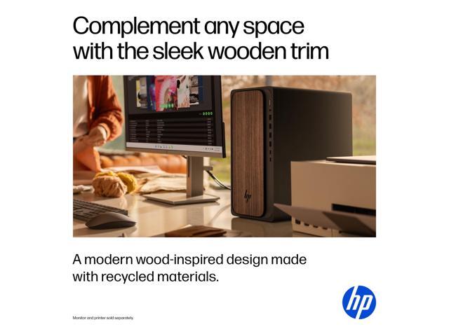 HP OmniDesk M03-0010 AI Desktop Computer, Intel Core Ultra 5 225 3.3GHz, 16GB RAM, 512GB SSD, Windows 11 Home, Jack Black/Dark Wood