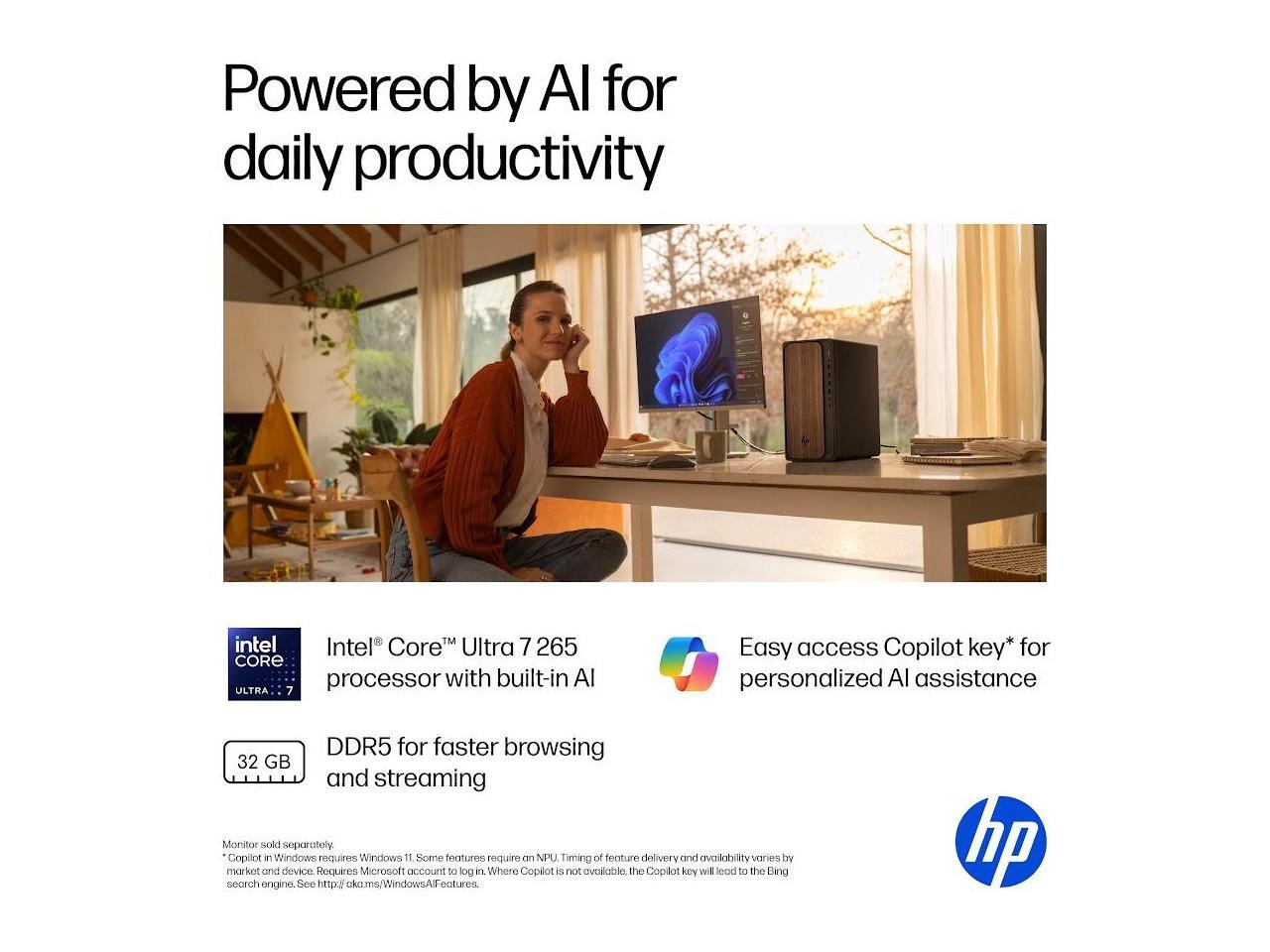 HP OmniDesk Desktop PC, Intel Core Ultra 7 265(Up to 5.2GHz), 64GB DDR5 5600MHz 2TB PCIe 4.0 SSD, Intel Graphics, Wifi 6, Bluetooth 5.4, Microsoft Copilot, Windows 11 Pro, Dark Wood