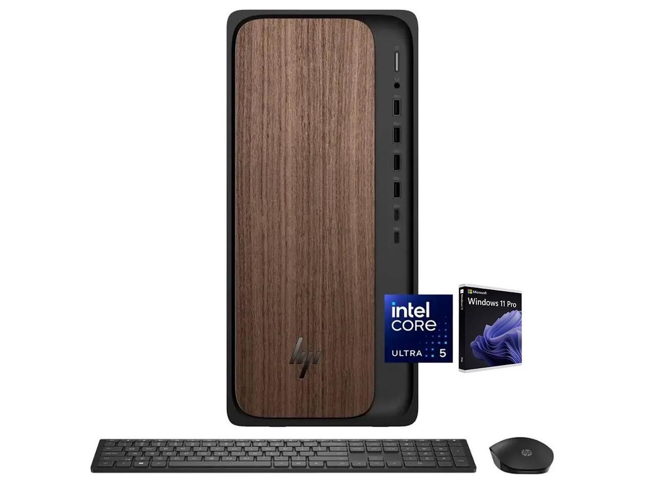 HP OmniDesk Desktop PC, Intel Core Ultra 5 225(Up to 4.9GHz), 32GB DDR5 5600MHz 1TB PCIe 4.0 SSD, Intel Graphics, Wifi 6, Bluetooth 5.4, Microsoft Copilot, Windows 11 Pro, Dark Wood