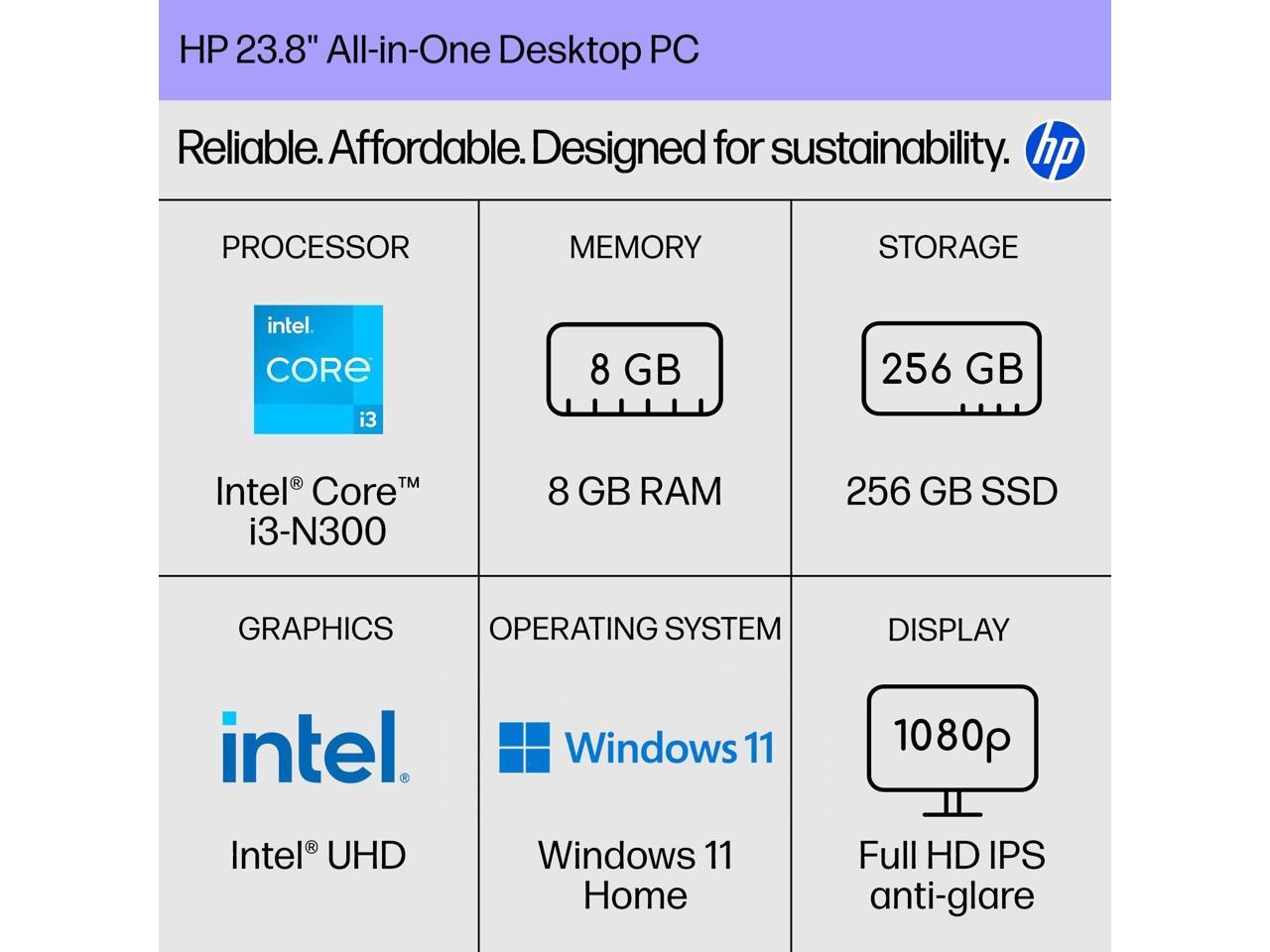 HP 24-cr0000a 24-cr0430 All-in-One Computer - Intel N-Series i3-N300 - 8 GB - 256 GB SSD - 23.8" Full HD - Desktop - Jet Black - Intel Chip - 1920 x 1080 - Windows 11 Home - Intel UHD Graphics DD