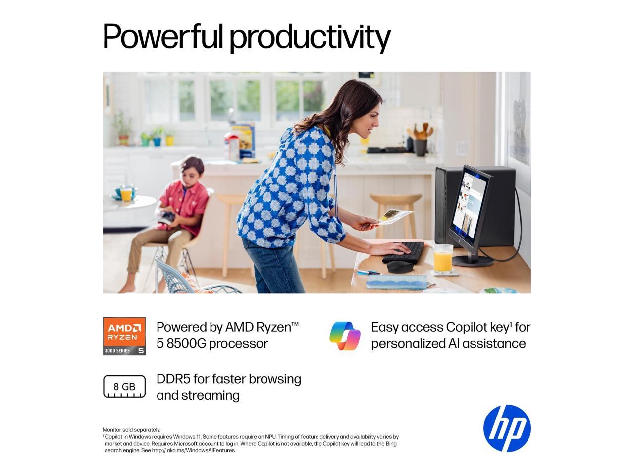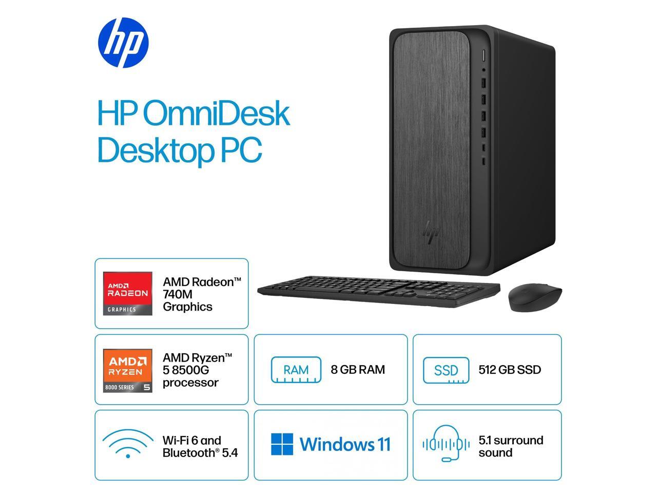 HP OmniDesk M02-0000a M02-0310 Desktop Computer - AMD Ryzen 5 8500G - 8 GB - 512 GB SSD - Gray Wood, Jack Black - AMD Chip - Windows 11 Home - AMD Radeon Graphics DDR5 SDRAM - IEEE 802.11 a/b/g/n/ax