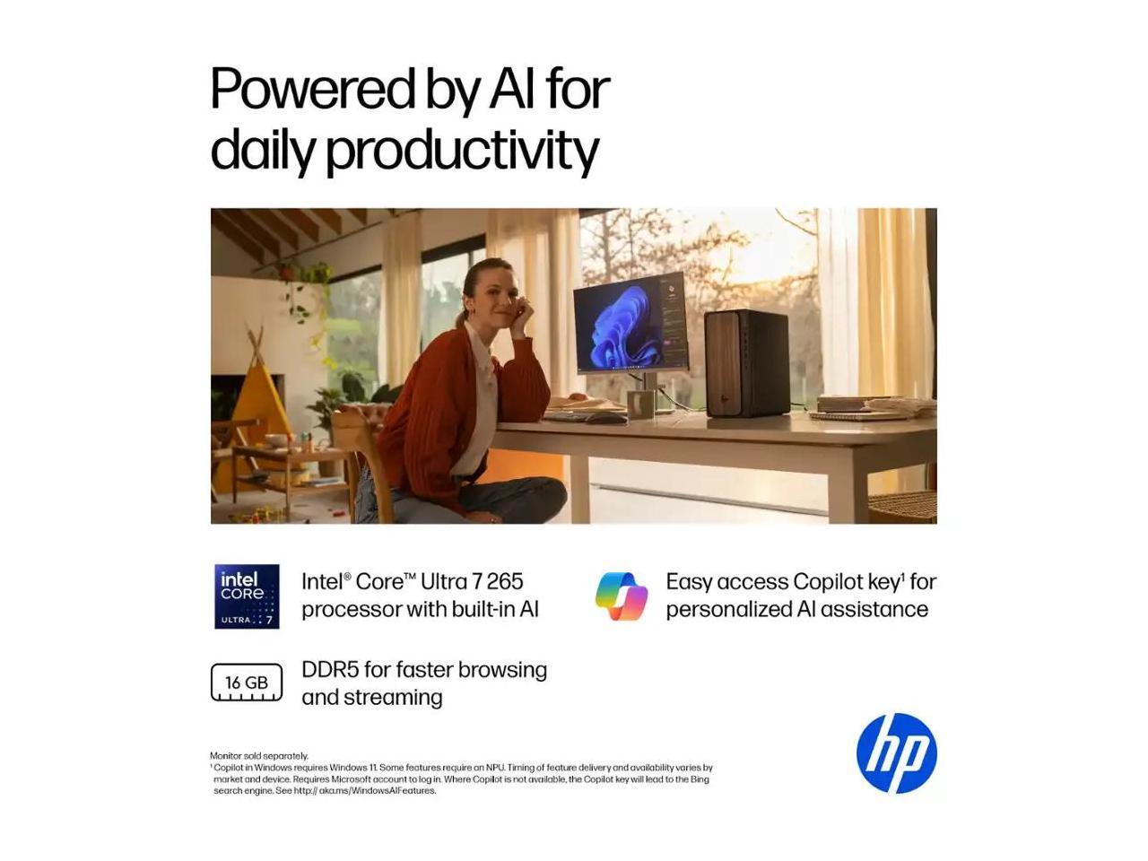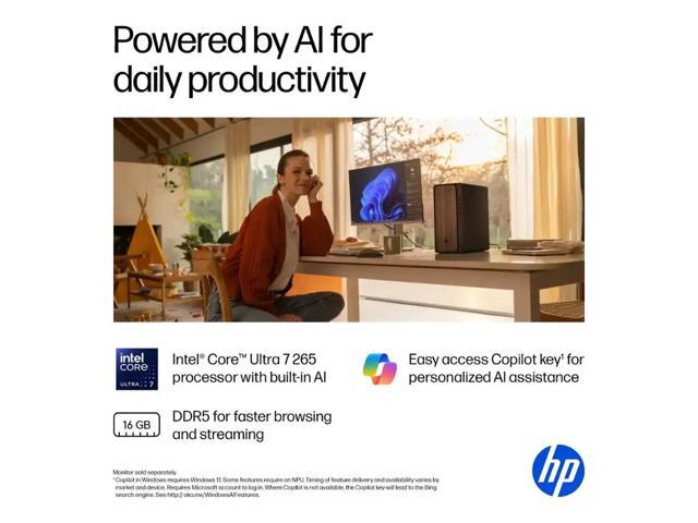 HP OmniDesk Desktop PC, Intel Core Ultra 7 265 (Beat Core i7-14700), 32GB DDR5 5600MHz 1TB PCIe 4.0 SSD, Intel Graphics, Wifi 6, Bluetooth 5.4, Microsoft Copilot, Windows 11 Home, Dark Wood