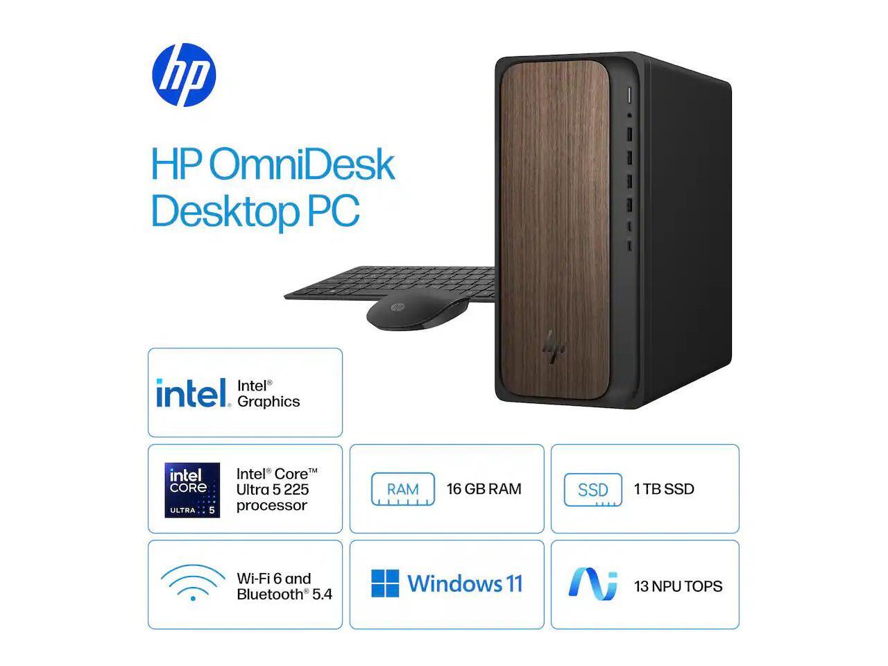 HP - OmniDesk Desktop - Intel Core Ultra 5 - 16GB DDR5 Memory - 1TB SSD - Dark Wood