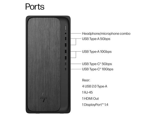 - 2TB PCIe NVMe SSD; 4 USB 2.0, HDMI, 1 Display Port, 2 USB 3.2 Type-C, 1 x Headphone/Microphone Combo Jack
