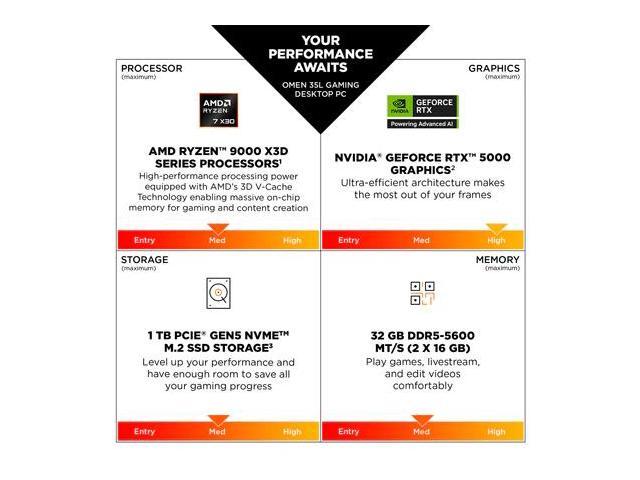 - Processor: AMD Ryzen 7 9800X3D (up to 5.2 GHz max boost clock, 96 MB L3 cache, 8 cores, 16 threads)