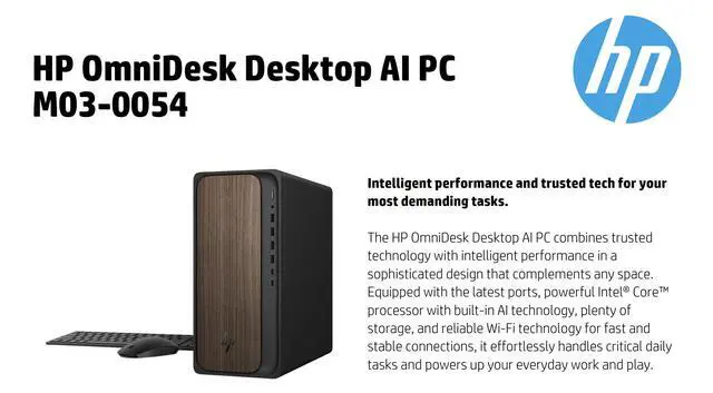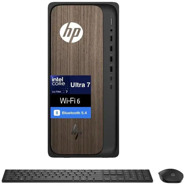 Model: HP OmniDesk OmniDeskForm/Style: TowerProcessor: 15th Gen Ultra 7-265 2.40GHz Processor (upto 5.3 GHz, 30MB Cache, 20-Cores, 20-Threads, 8 Performance-cores)Memory: 32GB DDR5 DIMMGraphics: Intel Graphics shared Integrated Graphics, Storage: 1TB PCIe SSD (Solid State Drive)Operating System: Windows 11 Pro-64Display: Connectivity: 802.11ax Wifi, Bluetooth 5.4, RJ-45Ports/Slots:, 4 USB 2.0, HDMI, 1 Display Port, 2 USB 3.2 Type-C, 1 x Headphone/Microphone Combo JackInput/Output:, Black, Wireless Keyboard, Wireless Mouse, Battery: 280W PSU, Other Features, Color: Dark WoodWeight: 9.8lbProduct Dimensions (WxLxH): 13 IN x 13.25 IN x 6.15 IN1 Year Manufacturer warranty from Velztorm (Professionally upgraded by Velztorm)