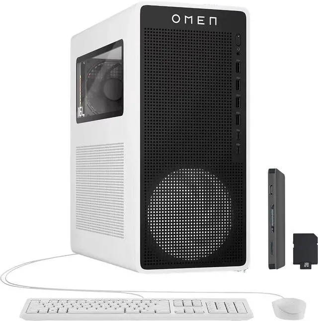 The HP Omen 16L Gaming Desktop delivers powerful performance with the AMD Ryzen 7 8700F and NVIDIA GeForce RTX 5060 8GB GDDR7, offering smooth, immersive gaming, complete with a keyboard and mouse.