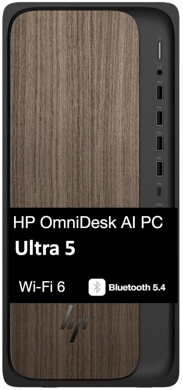Model: HP OmniDesk Form/Style: TowerProcessor: Ultra 5 225 3.30GHz Processor (upto 4.9 GHz, 20MB Cache, 10-Cores, 10-Threads, 6 Performance-cores)Memory: 32GB DDR5 DIMMGraphics: Intel Graphics Integrated Graphics, Storage: 8TB PCIe SSD (Solid State Drive)Operating System: Windows 11 Home-64Display: Connectivity: 802.11ax Wifi, Bluetooth 5.4, RJ-45Ports/Slots:, 2 USB 3.0 Type-A, 2 USB 3.1 Gen2, 4 USB 2.0, HDMI, 1 Display Port, 2 USB 3.2 Type-C, 1 x Headphone/Microphone Combo JackInput/Output:, Black, Wireless Keyboard, Wireless Mouse, Battery: 280W PSU, Other Features, Color: Dark WoodWeight: 9.6lbProduct Dimensions (WxLxH): 13 IN x 13.25 IN x 6.15 IN1 Year Manufacturer warranty from Velztorm (Professionally upgraded by Velztorm)