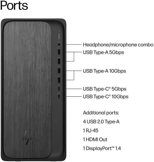 2 x USB-A 3.0, 2 x USB-A 3.1, 1 x USB-C 3.0, 1 x USB-C 3.1, 4 x USB-A 2.0,1 x DisplayPort 1.4,HDMI 2.1,Ethernet (RJ45)
