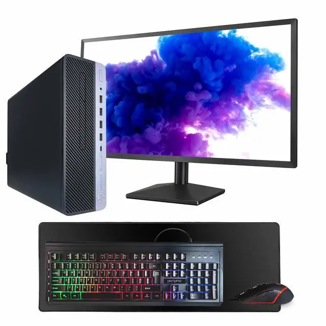 Includes Essential Accessories Comes with wired gaming keyboard and mouse, oversized mouse pad, and 24" monitor. This professionally refurbished PC has been tested and inspected for quality, reliability, and performance.