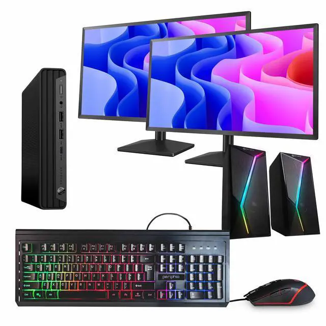 Includes Essential Accessories Comes with 5G wifi/bluetooth adapter, wired gaming keyboard and mouse, RGB speakers, and dual 24" monitors. This professionally refurbished PC has been tested and inspected for quality, reliability, and performance.