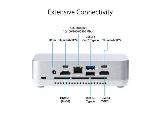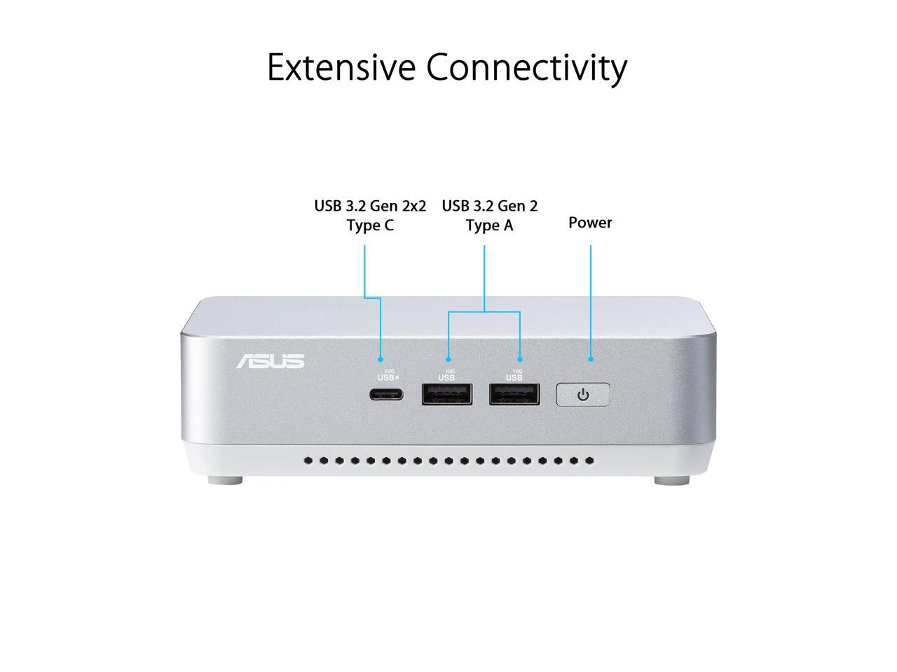 ASUS NUC 14 Pro+ Full System Mini PC with Intel 14th Gen Core Ultra 9 185H, 32GB DDR5 RAM, 1TB PCIe G4x4 NVMe SSD, Thunderbolt 4, Wi-Fi 6E & Bluetooth 5.3, Win 11 Home, Silver Aluminum Chassis, Toolless Chassis Access, VESA Mount included
