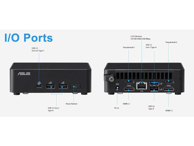 - The ASUS NUC 14 Pro offers USB 3.2, Thunderbolt 4, HDMI 2.1, and Ethernet. Wi-Fi 6E and Bluetooth 5.3 enhance networking and peripheral connectivity.
