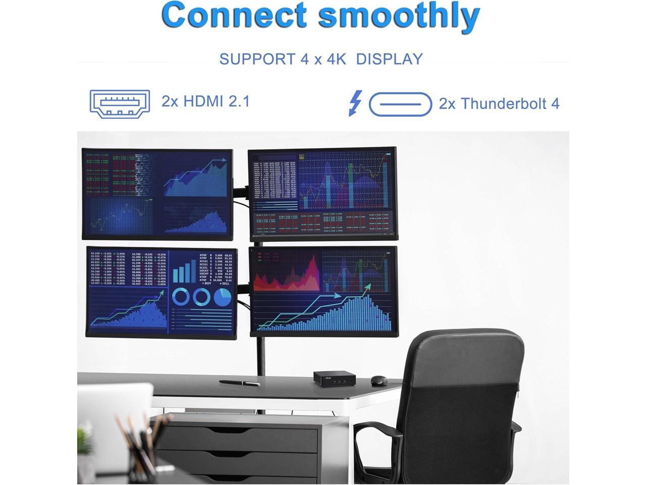 - Connect up to four 4K monitors for enhanced multitasking. Perfect for professionals needing multiple displays to streamline workflow.