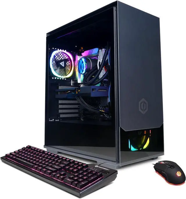 Get the pinnacle of gaming performance with the CYBERPOWERPC Gamer Supreme series of gaming computers. The Gamer Supreme series features monstrous processing power combined with the latest and greatest graphics cards to handle even the most demanding games on the market. An immense RAM allows you to easily tackle system-intensive applications such as video editing, and ensures a lag-free multitasking experience. A lightning-fast SSD boot drive provides quick load times for your most used games and applications. The Gamer Supreme series looks as stunning as it performs, as all these high-end components are packaged in a striking, sleek chassis.