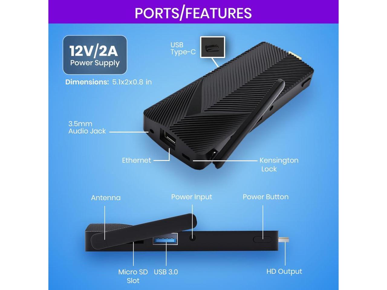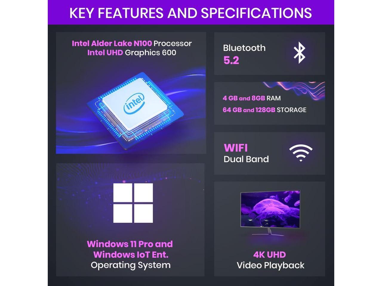 Azulle Access Pro Mini PC Stick Alder Lake Series with Zoom - Intel - N100 - Quad-core (4 Core) - 8 GB - LPDDR4 - 128 GB Flash Memory - Intel - UHD Graphics - Wireless LAN - Bluetooth - HDMI - 2 x Num