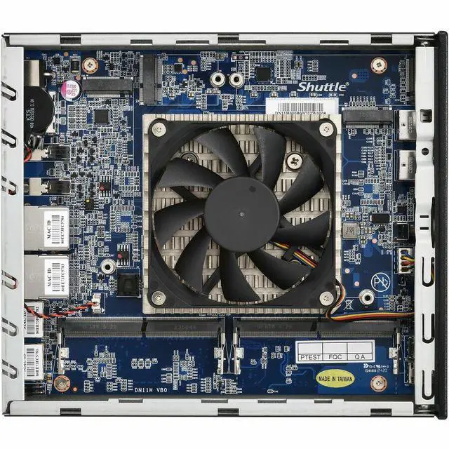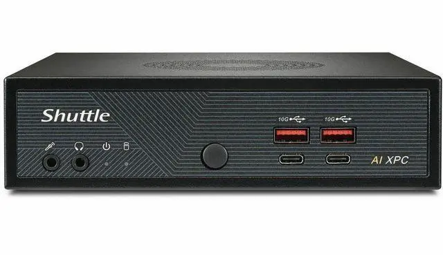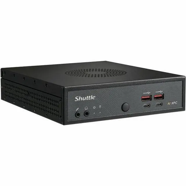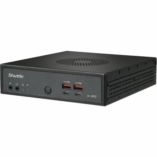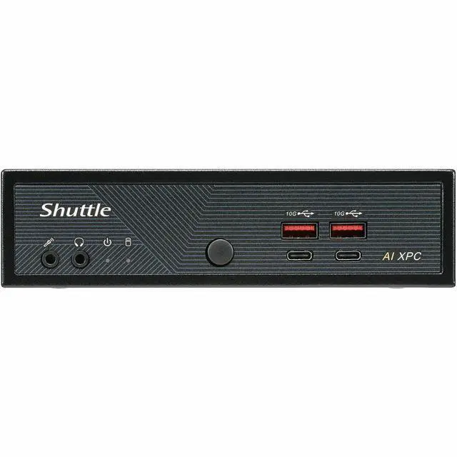 VERSATILE 1.3 -LITRE AI PC WITH EXCEPTIONAL CONNECTIVITYThe Shuttle DN11H-series AI-PC is a 1.3 -liter barebone PC powered by an Intel (r) Core™ Ultra series processor, delivering significantly upgraded performance from everyday tasks to business applications. This AI-focused platform integrates CPU, GPU, and a specialized NPU designed to accelerate neural network computations, offering up to 34 TOPS of total system performance to support complex AI workloads. The DN11H stands out with its exceptional connectivity, including four 2.5G LAN ports for high-bandwidth networking, eight high-speed USB-C/USB-A ports, four ports for UHD-displays and three M.