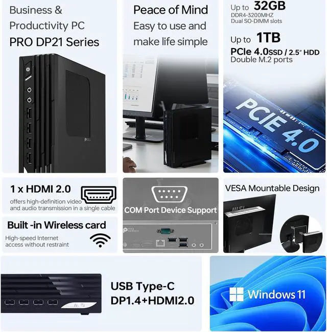 Hard Drive: up to 1TB PCIe M.2 SSD, 1TB HDD