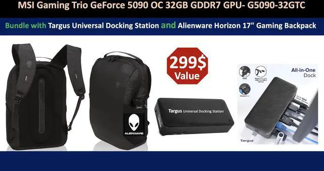 HDMI 2.1 b: up to 4K 480Hz or 8K 120Hz with DSC, Gaming VRR, HDR). Bundle with Targus dock station and Backpack Alienware.