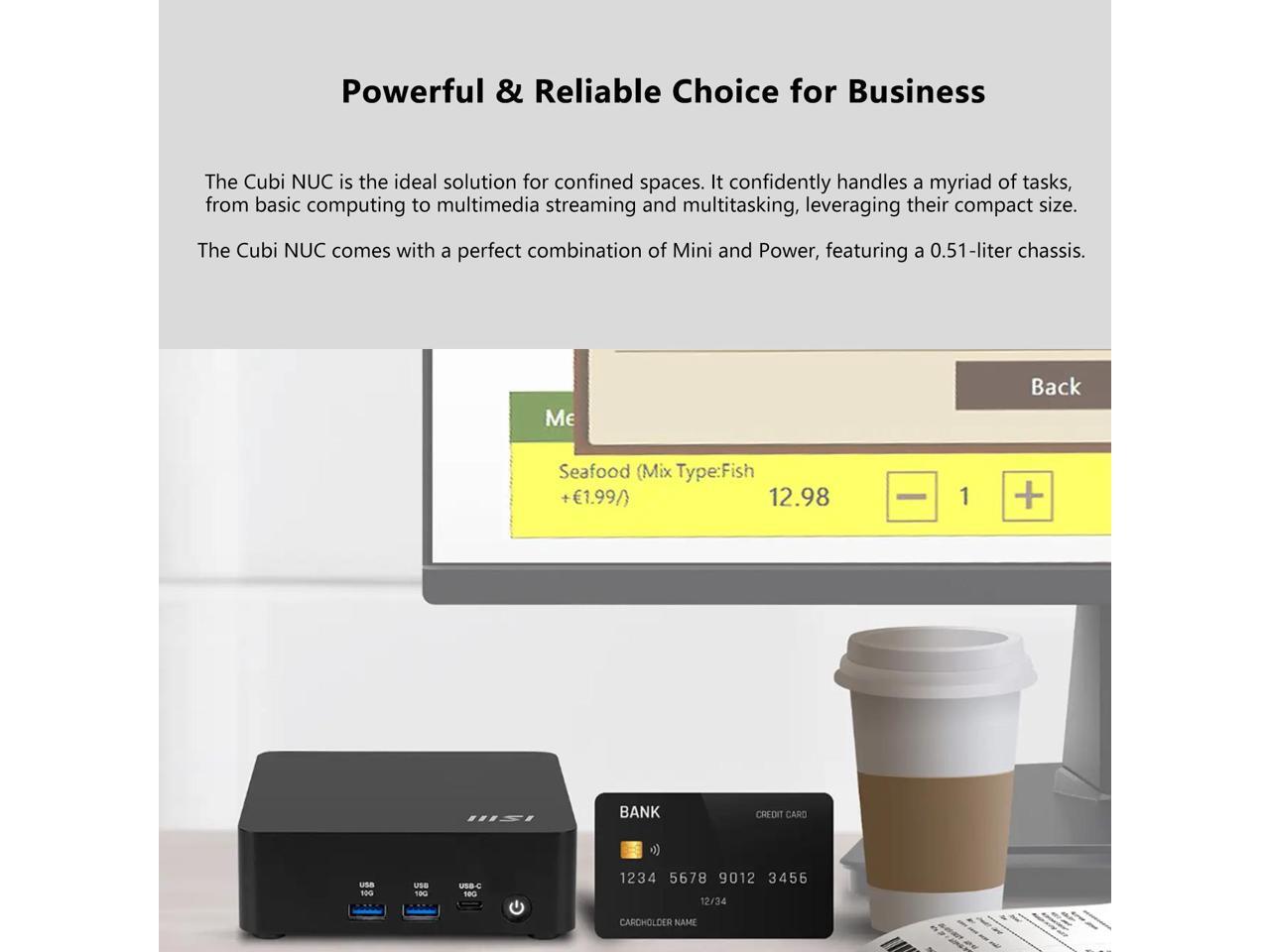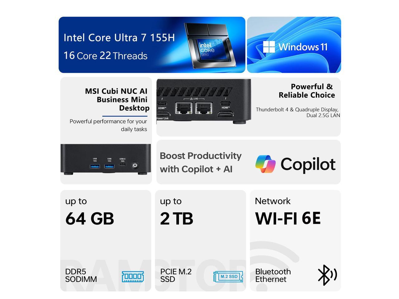 MSI Cubi NUC AI Business Mini Desktop, Intel Core Ultra 7 155H, 16GB DDR5, 512GB SSD, 2 x HDMI, Dual 2.5G LAN, Wi-Fi 6E, Windows 11 Pro, Black