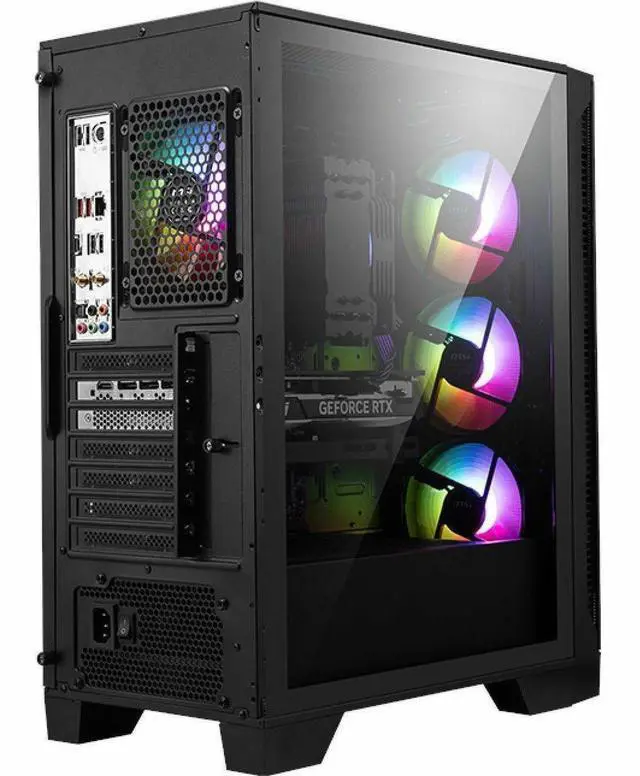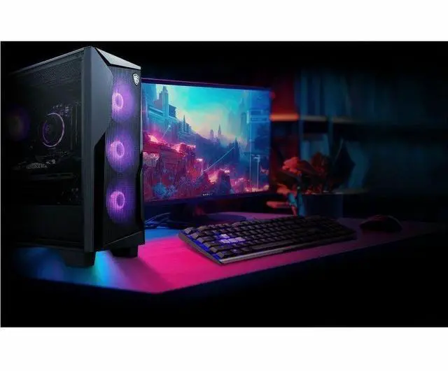 Out of the Box, Into the ActionThe new mesh-style front panel design drastically increases airflow to the system compared to previous generations. In addition, Frozr AI Cooling in MSI gaming desktops learns and predicts system temperature to adjust fan speed, ensuring peak performance in a low-noise environment with AI assistance.