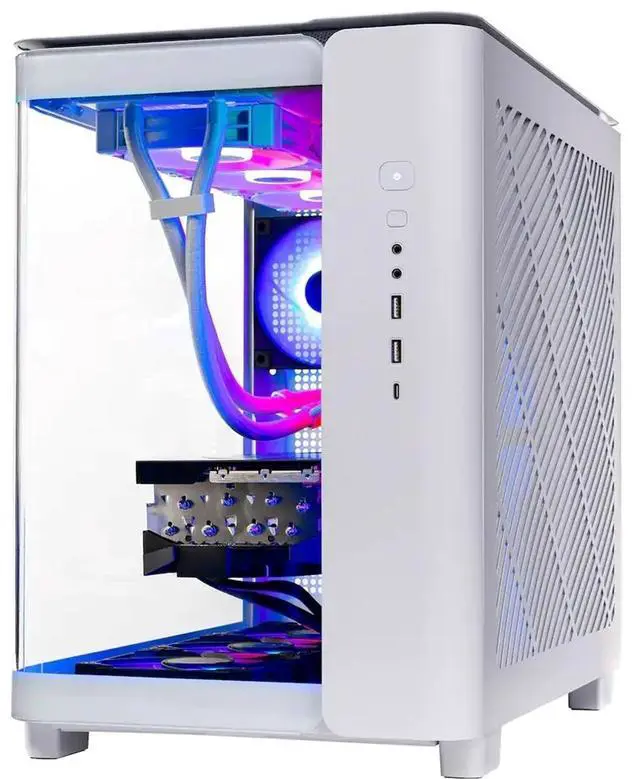 Immerse yourself into the world of gaming with the Skytech ST-KING95-1622-W-BU Gaming Desktop PC. This powerful machine features an AMD Ryzen 7 9700X processor, NVIDIA GeForce RTX 5070 dedicated graphics, 32GB of DDR5 RAM, and a 2000GB SSD for seamless gaming performance. With liquid cooling, Windows 11 Home, and a stylish white design, this desktop is ready to elevate your gaming experience to the next level.