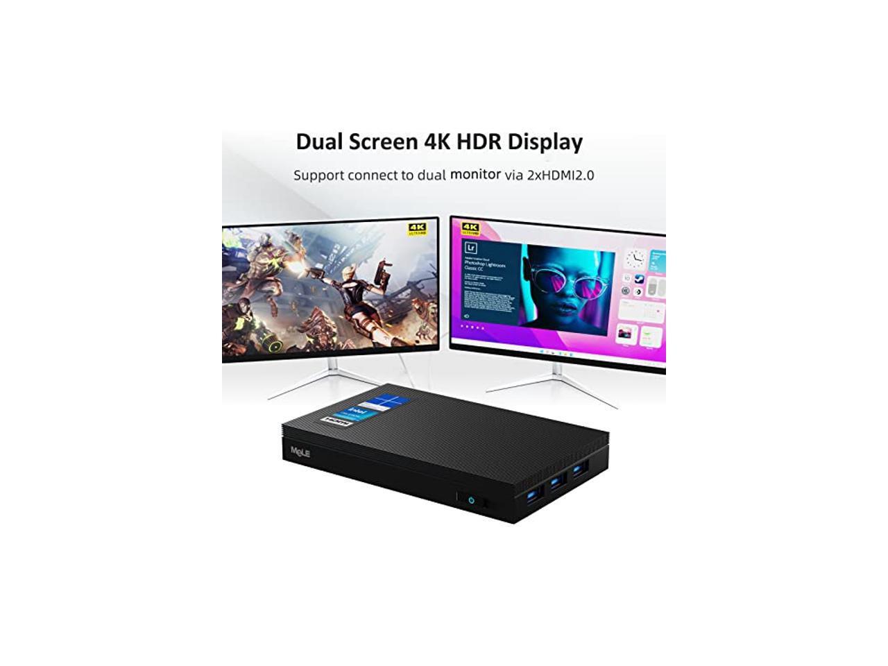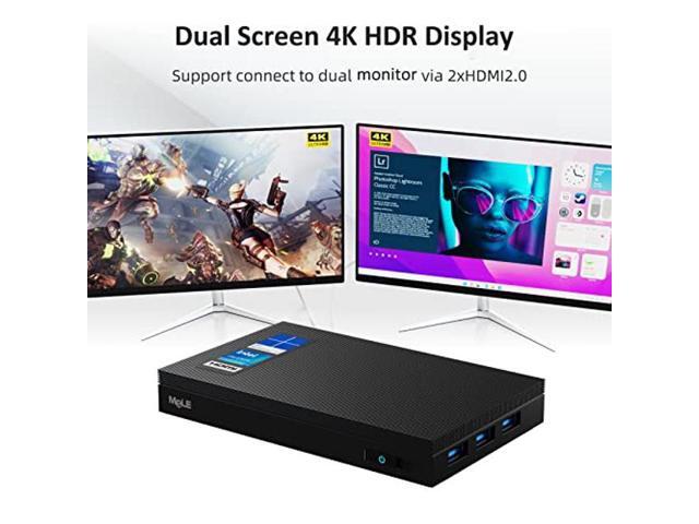 - WiFi 6, Bluetooth5.2, Gigabit Ethernet and Dual HDMI - The small pc adopts theatest WiFi 6 technology, Support MU-MIMO, plus built in a Gigabit Ethernet port, providing a stable connection at higher speed, ensure smoother streaming and faster downloads. The HDMI supports 4K@60fps HDR videos dual-screen outputs, ideal for visually home video, with 4xUSB