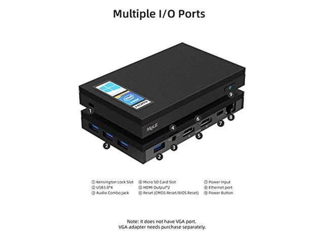 Wide Compatibility for Computer Peripherals ---Built in Multiple I/O Ports,offers more connectives. 4x USB 3.0, 2x HDMI 2.0 port, support 4K@60Hz,(Does not have VGA port,need purchase adapter separately),1x 3.