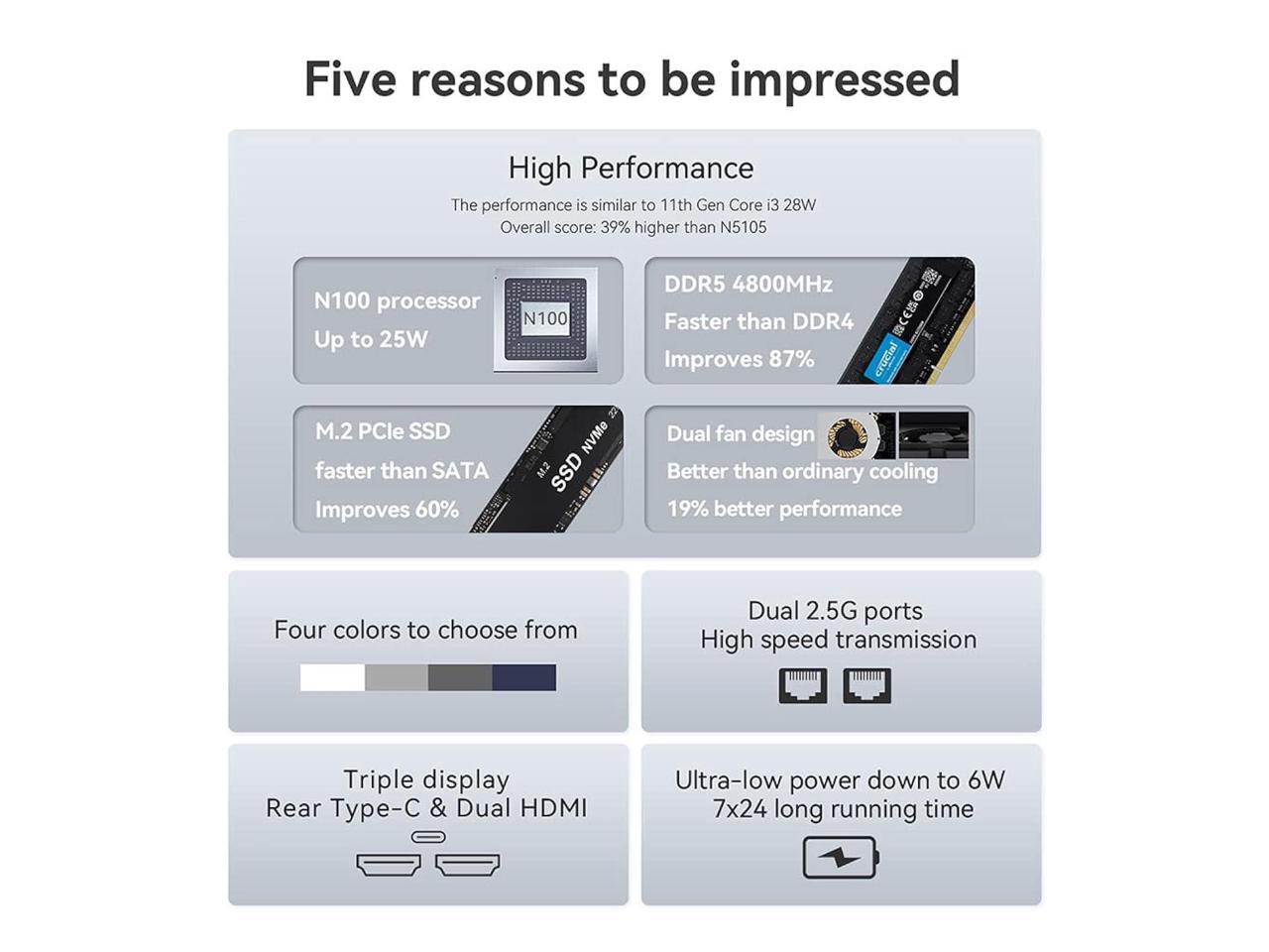 - High Performance Processor - The Beelink MINI S12 Pro Mini PC is powered by the latest 12th generation Intel processor Alder Lake-N100 (4C/4T, 6M Cache, up to 3.4GHz), whose performance has been i
