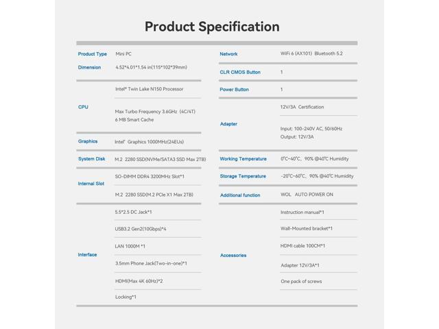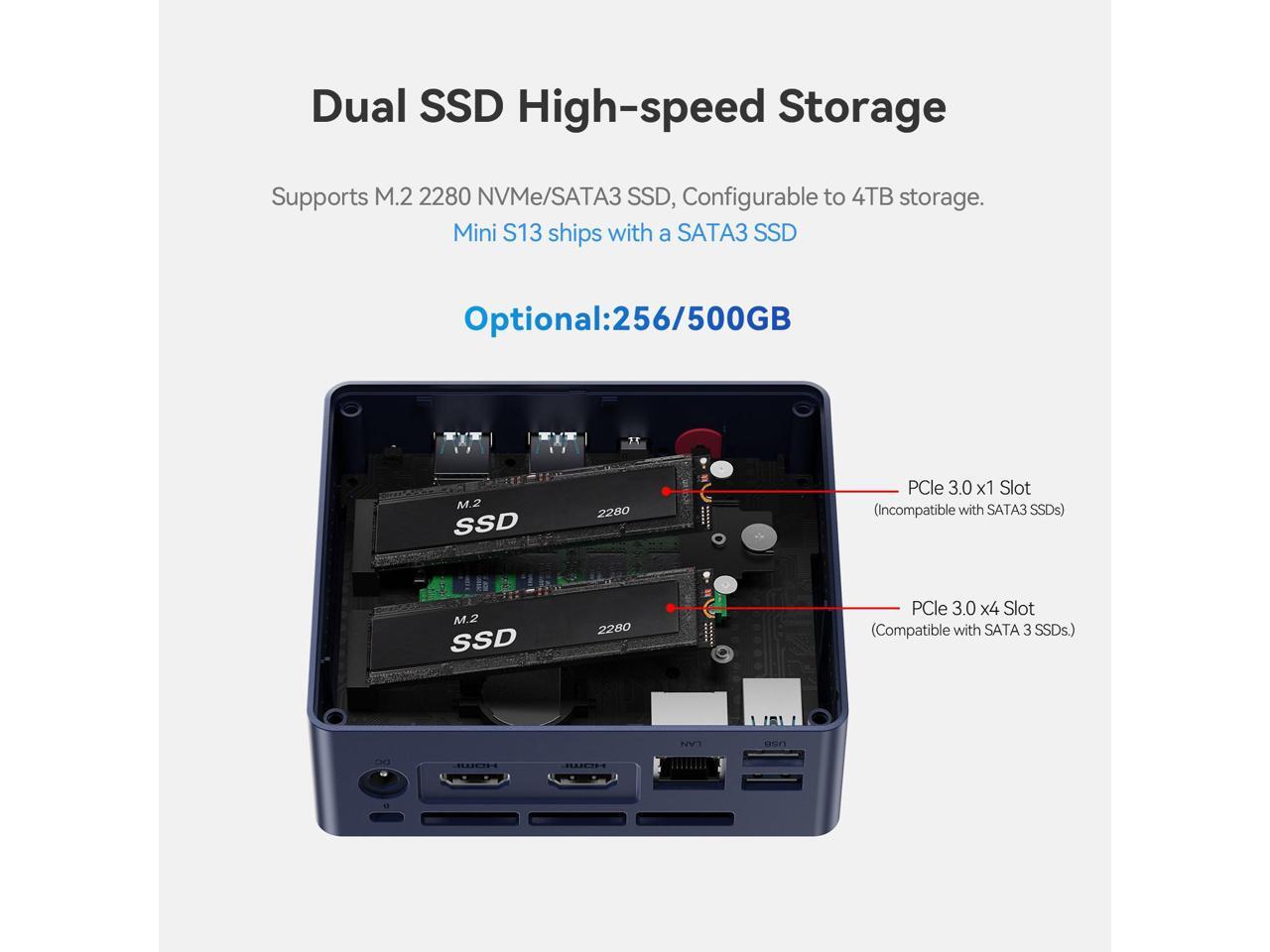 - Strong CPU:Beelink Mini S13 (upgraded Mini S12 Pro) is equipped with Intel Twin Lake N150 processor, 4 cores 4 threads , 3.6GHz maximum turbo frequency, 25W TDP.