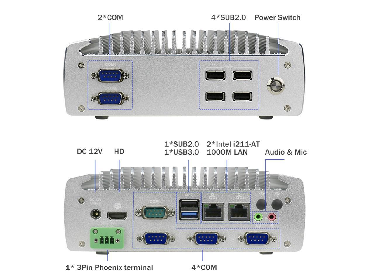 Fanless Industrial Mini PC Intel Celeron J1900 Quad Core Dual Lan Linux/Windows Micro Computer Support RS232 RS485 COM HD-MI 8G RAM 240G SSD