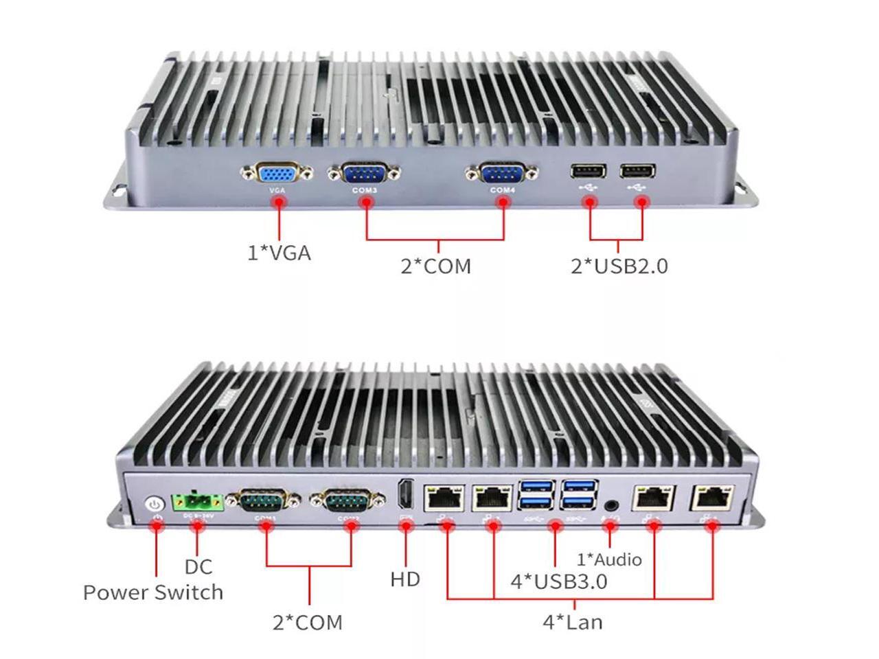 Partaker Fanless Mini PC,Industrial Computer,IPC,Intel Core i5 8265U Processor,8G RAM 256G SSD Windows 10/11 Pro,TPM2.0, AES-NI, 1xVGA, 1xHD, 4xLAN, 4xCOM, 9-36V, WiFi