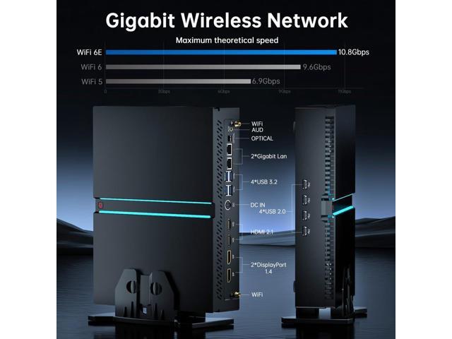 - Mini computer is equipped with 4 x USB3.2, 4 x USB2.0, 1 x HDMI port, 3 x DP ports, 2xRJ-45 Gigabit Network Ethernet, 1 x Fiber Optic PORT, 1 x Audio in/out