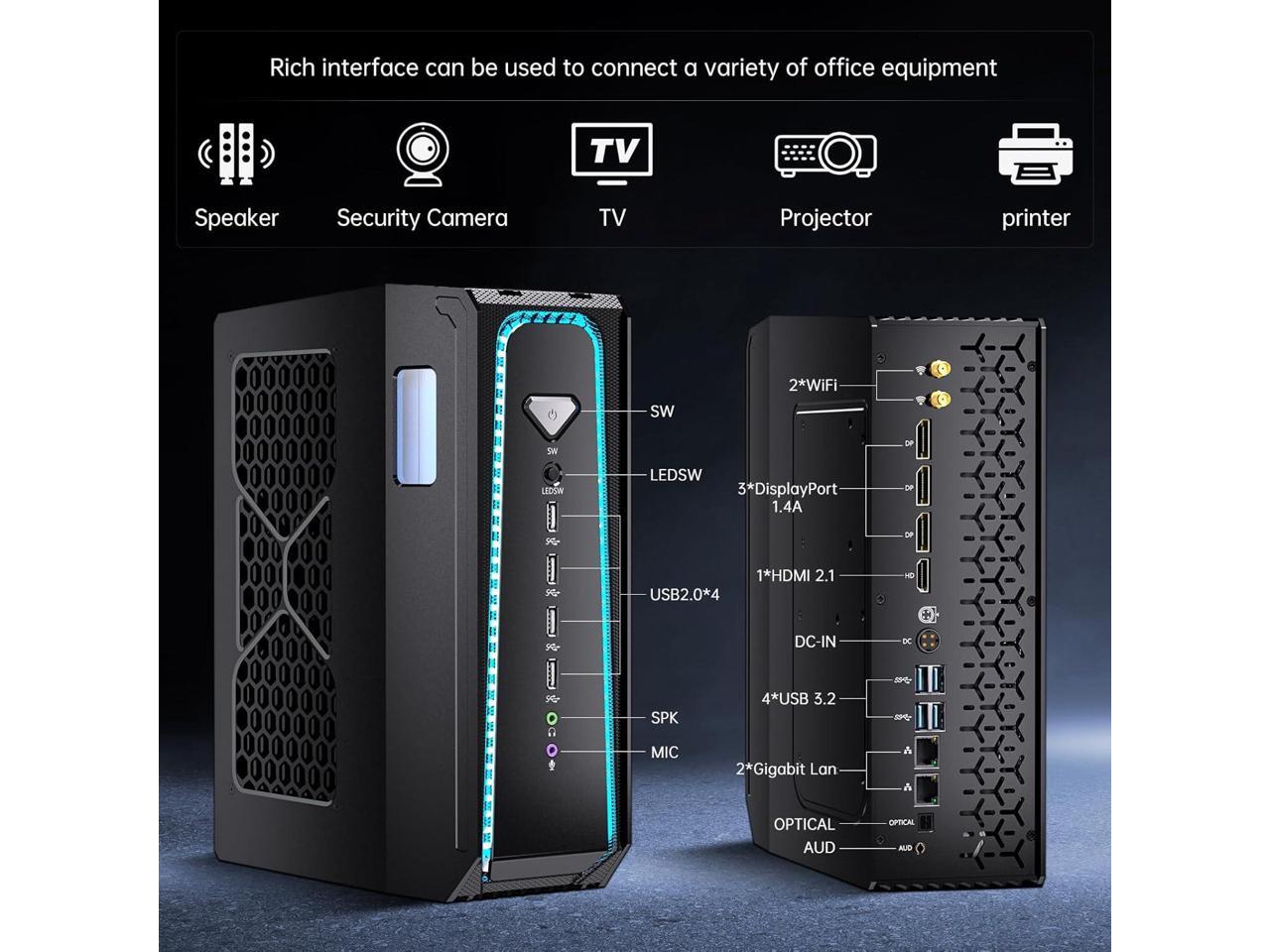 Partaker Mini Gaming PC, Liquid-Cooled PC, Desktop Computer, Core i7 14700KF/14700F, GeForce RTX5070 12G, 64GB DDR5 4TB M.2 PCIE4.0 SSD, Four Display, 8K@60Hz Outputs, Dual LAN, WiFi7/BT5.4