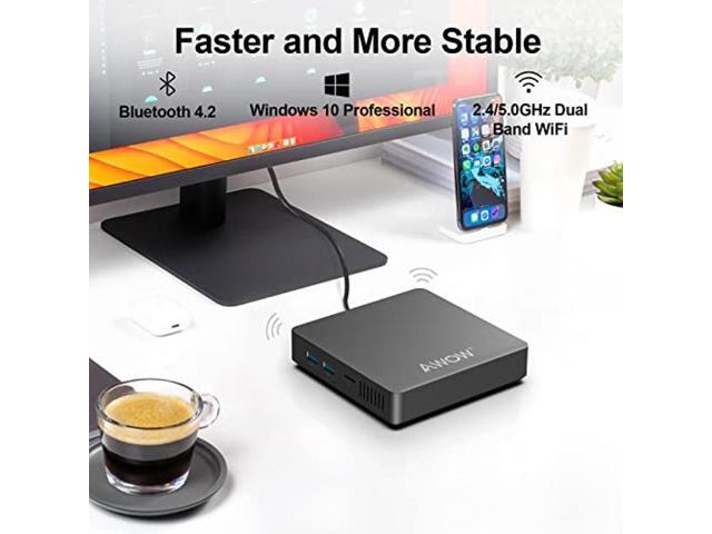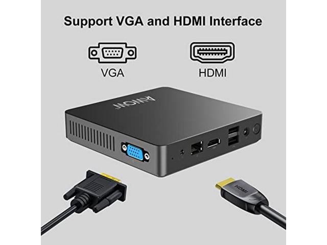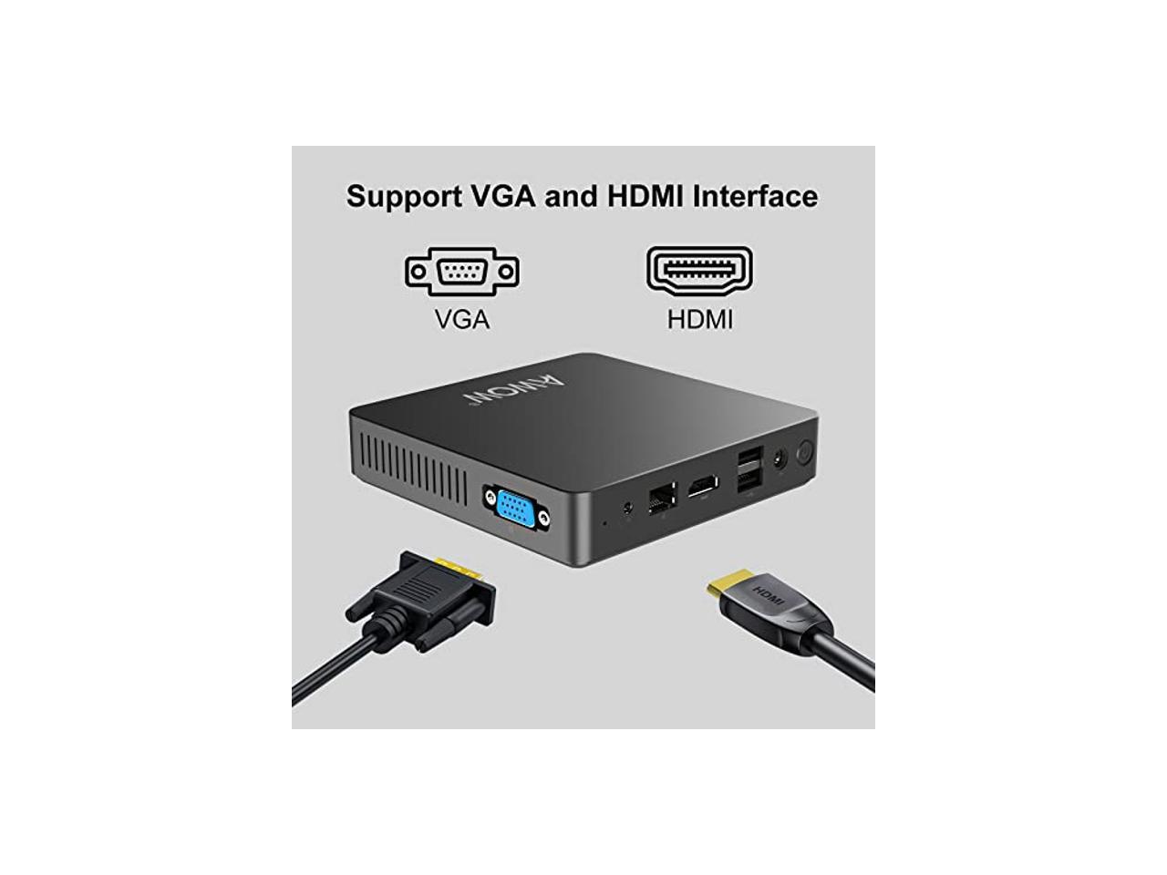 - [(BT 4.2 and 2.4G/5.8G WIFI)] AWOW Mini pc windows 10 pro equipped with 5.8G+2.4G Dual Band WiFi & Bluetooth BT 4.2, very convenient to connect to other devices. With a 3.5mm earphone combo with a microphone, the Mini PC will give you an auditory feast. It supports Auto Power On, RTC, 7/24 running. Support up to 2 displays using HDMI and VGA, dual displays, more productivity.