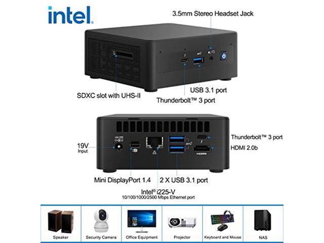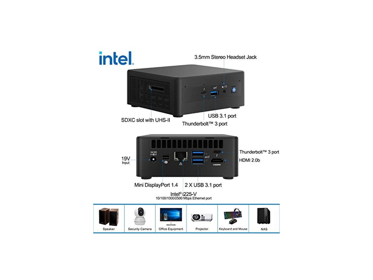- [(Kingston RAM+SSD Upgraded)] Intel NUC Seal is opened for Hardware/Software upgrade RAM+SSD only to enhance performance ; Wi-Fi 6 AX201 Wifi, Bluetooth 5.2, Ethernet LAN (RJ-45), No Webcam, No Display.
