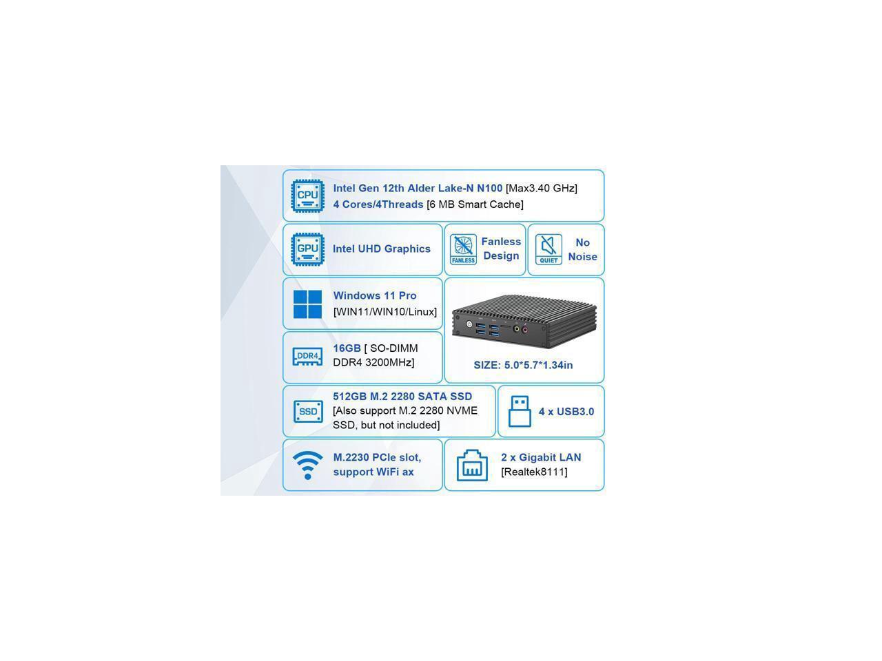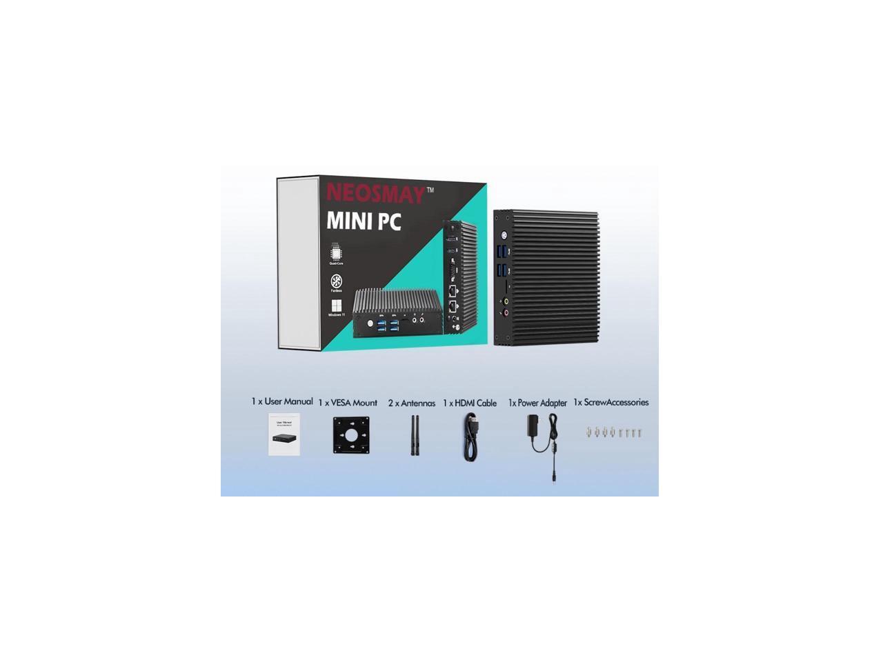 NEOSMAY Fanless Mini PC Desktop Tower Computer Pfsense Firewall Router Micro Appliance,for Intel 12th N100 Dual Gigabit Ethernet,16GB DDR4 RAM 512GB SATA SSD,Dual Display HD&DP, COM232, 4*USB3.0