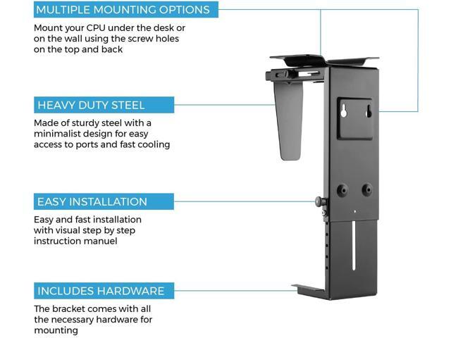 - UNDER DESK OR WALL MOUNT: Mount your computer case under a desk, under any secure flat surface, or on the wall to get your CPU off the floor or out of sight for a decluttered workspace