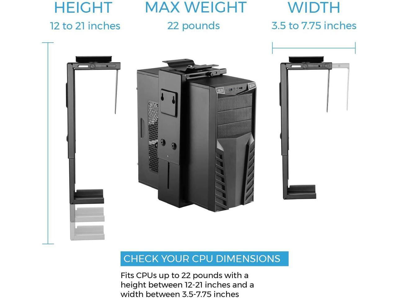 - ADJUSTABLE COMPUTER MOUNT: Fits CPUs up to 22 pounds with a height between 12-21 inches and a width between 3.5-7.75 inches