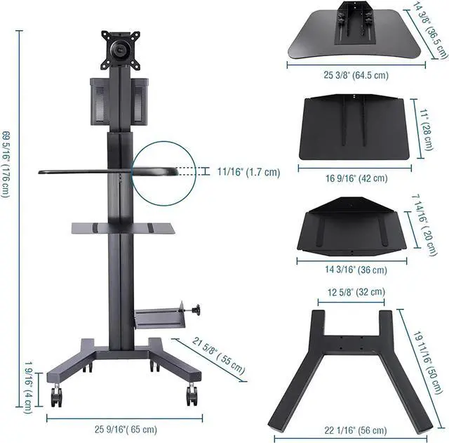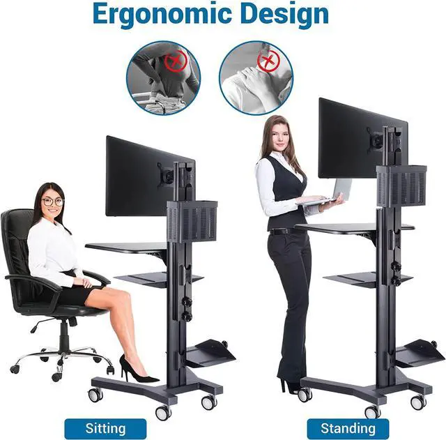 Compact Design - Includes monitor mount, 3 platforms, and a storage basket providing ample space to place monitor, laptop, keyboard, printer, and CPU, with a cable management system to organize the cables. Space saving to small space, small business or mobile working.
