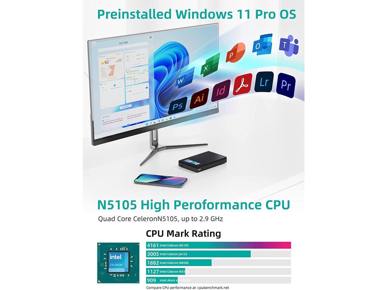 Fanless Mini PC Windows 11 Pro Celeron N5105 Small Desktop Computer 8G LPDDR4 256G ROM Micro Form Factor PC Support WiFi 6,BT 5.2,Gigabit Ethernet,Dual 4K HDMI for Office/Home/Business