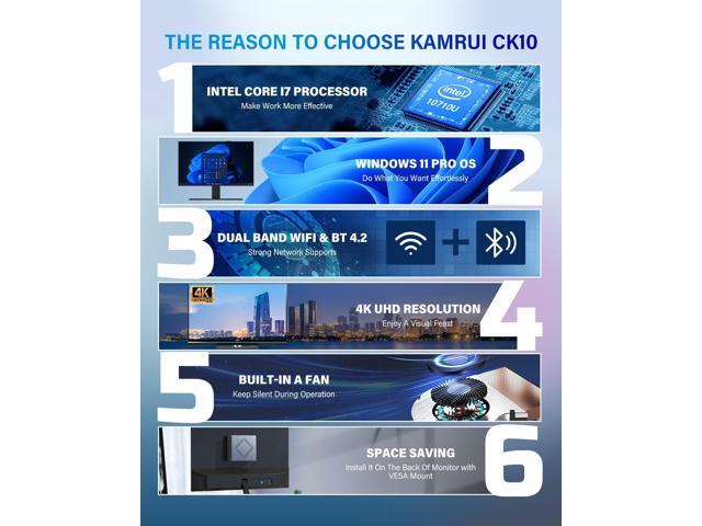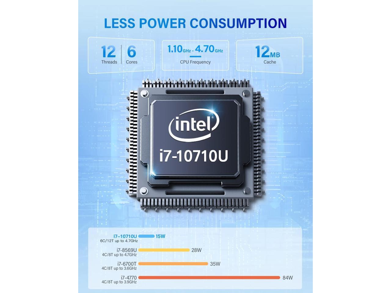 - CK10 Mini PC 16GB RAM, Intel Core i7-10710U(up to 4.7GHz) Mini Computer Windows 11 Pro, Six-Core Small Desktop Computers Tower Support Triple Display..New Modern Mini Desktop PC i7Add more power to your workspace with the KAMRUI CK10 mini PC with a 10th-gen Intel Core i7-10710u processor(6C/12T, up to 4.7GHz, 12MB Cache). It runs faster than i5-1235U, i5-1135G7, i5-8279U, and Ryzen7-3750H. This small PC computer powered by a low-power processor with thermal design power consumption TDP is around 15W
